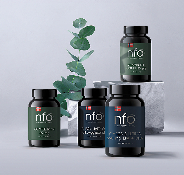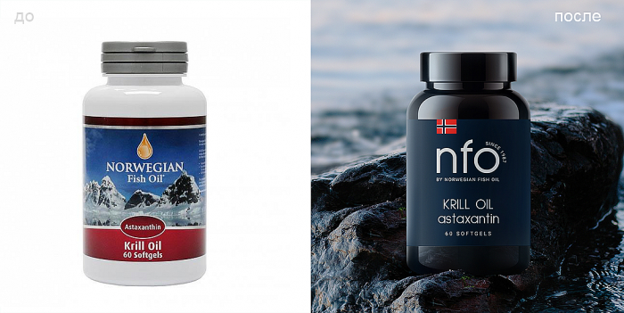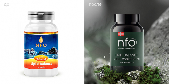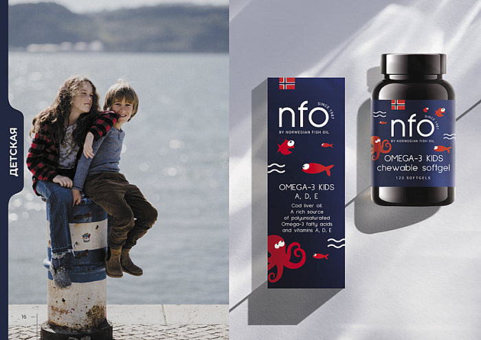 Новые ценности, которые пронизывают всю коммуникацию Norwegian Fish Oil, — желание делать лучшее для себя, а также лидерство, результативность и посвященность. Название на логотипе было сокращено до аббревиатуры NFO. При этом было сохранено и полное наименование бренда мелким шрифтом для тех, кто уже знаком с продуктом.
