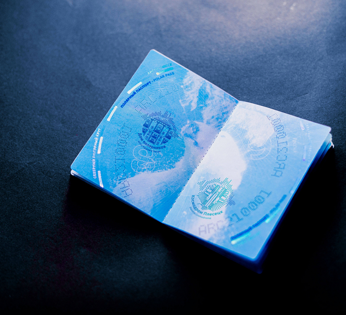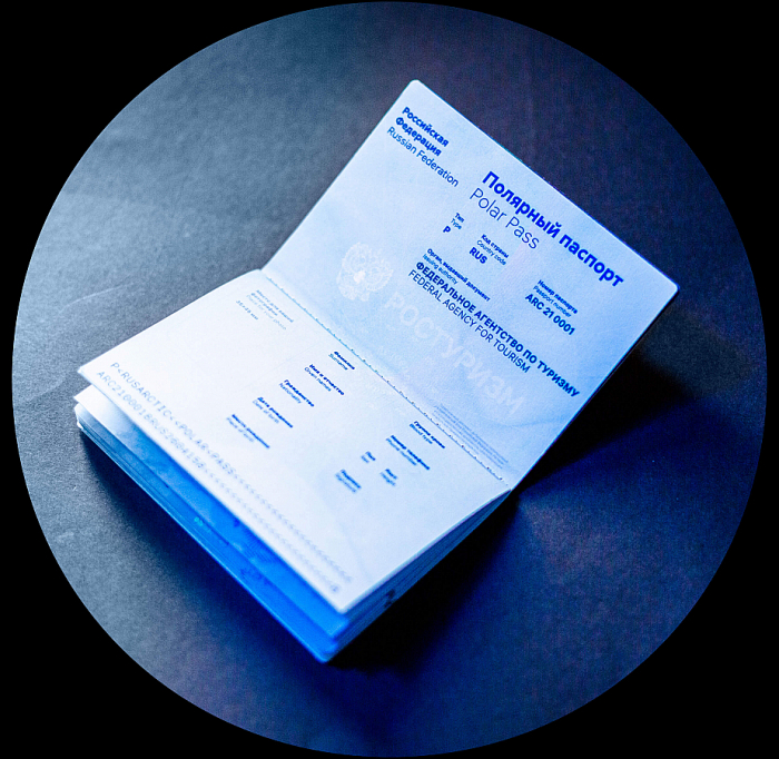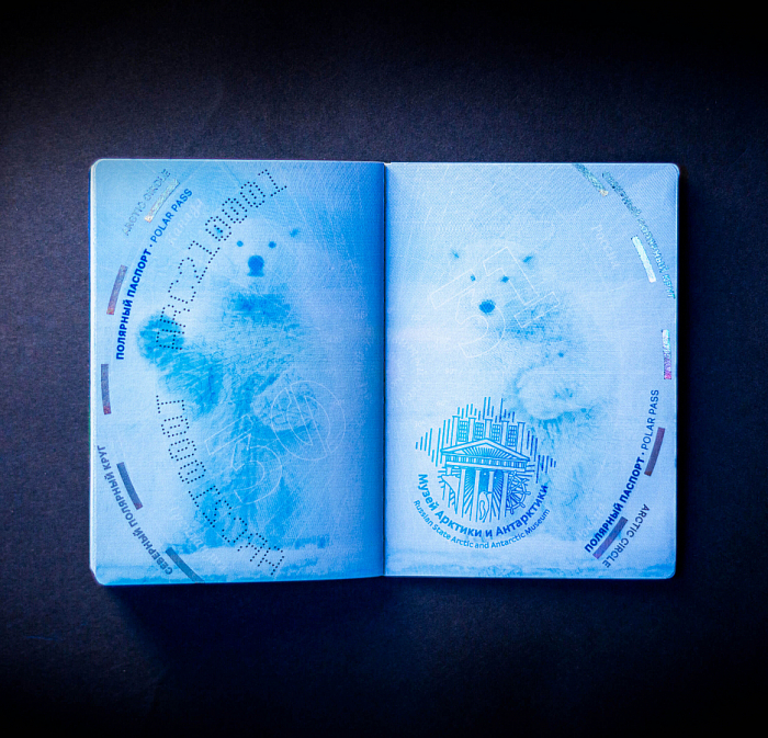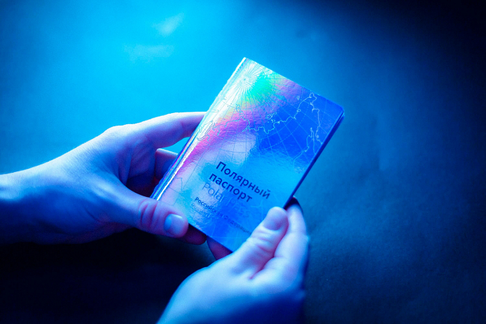 «Студия Артемия Лебедева» задизайнила «полярный паспорт» — у документа есть все формальные атрибуты (разворот с личными данными и защитные от подделок элементы, чтобы стать «проводником в царство вечной зимы»).
