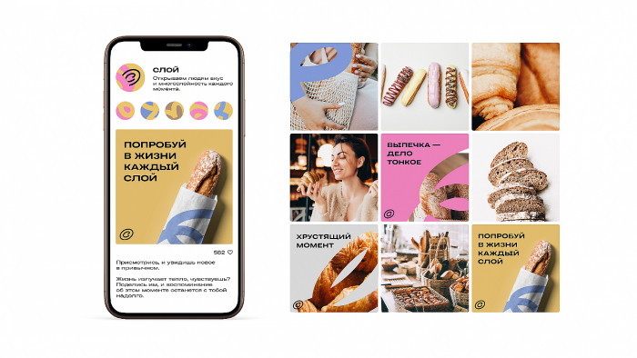 «Слой» — это сеть пекарен, которые дополняют повседневность и открывают людям многослойность моментов жизни. По словам дизайнерам агентства, динамика и движение начертания логотипа отражают непрерывное совершенствование.