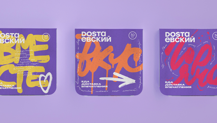 Dostaевский — проект про объединение вкусной еды (пицца, роллы, стритфуд) и активного стиля жизни жителей Москвы, Санкт-Петербурга и Сочи. Компания регулярно открывает новые вкусы, форматы и впечатления от заказа еды на дом или в офис. И всё это теперь транслируется в новом фирменном стиле бренда с обновлённым логотипом и уникальной каллиграфией.