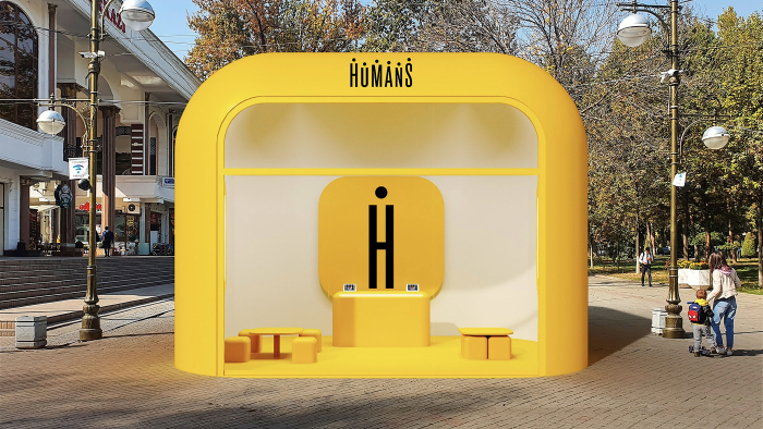 Humans — это приложение, которое объединяет в себе услуги виртуального мобильного оператора, банковские услуги и маркетплейс. Кроме приложения, компания запускает офлайн-точки продаж, сделать которые было задачей агентства. Точка продаж должна стать модульным конструктором, способного разворачиваться в любом месте в соответствующем объеме и формате.
