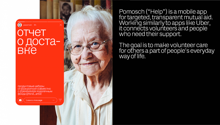 «ПОМОЩЬ» — мобильное приложение для адресной и прозрачной помощи, которое основал актер Никита Кукушкин. По принципу Uber оно соединяет волонтеров и людей, которые нуждаются в поддержке.