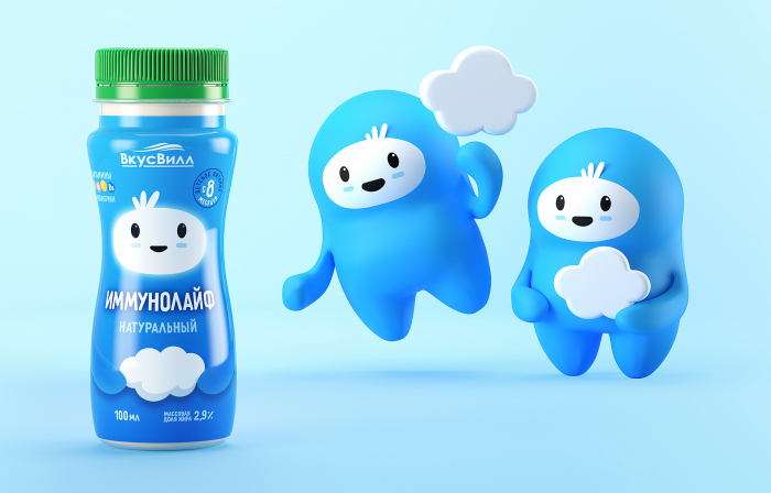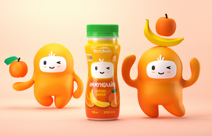 Среди аналогичных продуктов ВкусВилл «Иммунолайф» выделяется количеством пробиотиков, что решено было подчеркнуть при разработке дизайна — и сам собой появился образ «друга иммунитета».