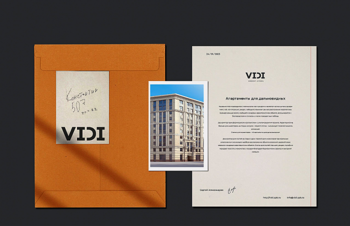 Название «VIDI» переводится с «латинского» как «увидел» и является частью цитаты Цезаря «Veni, vidi, vici» («Пришел, увидел, победил»). Означает раннее распознание перспективы («увидел раньше всех»), сообщает о видовых характеристиках объекта, ассоциируется с благородством и статусом, а также передает дух победы.
