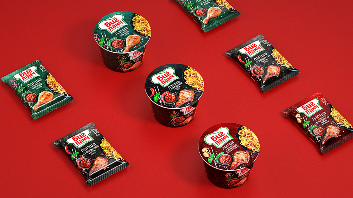 К примеру, для лапши с говядиной в остром соусе был выбран черный оттенок, с тушеной курицей и луком — малахитовый, а для лапши по-узбекски — теплый зеленый с орнаментом.