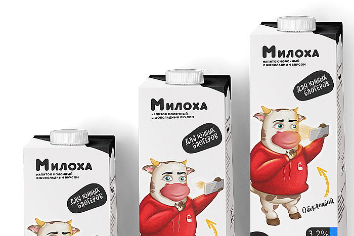 При разработке этого бренда, в первую очередь, делался акцент на понимании целевой аудитории и на то, что им нравится, что они обращают внимание. Таким образом, было выбрано востребованное среди детей направление – блогерство, YouTube и TikTok. Персонаж Милоха олицетворяет собой блогера, который любит молоко и молочные напитки, при этом снимает свои блоги. Также была разработана идея, которая помогает видеть в продукте не только молоко, но и развлечение – сам персонаж является стикером, который можно отклеить.