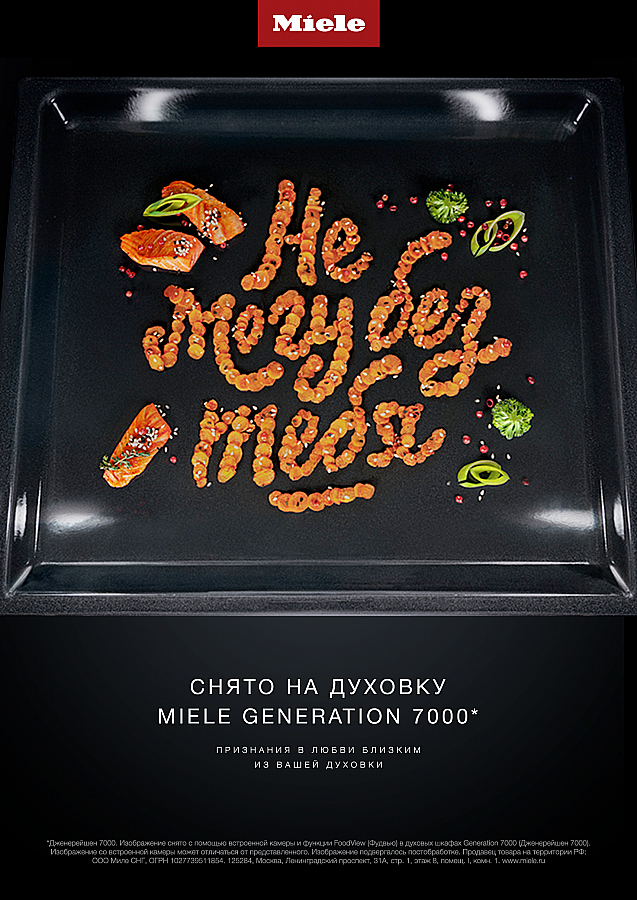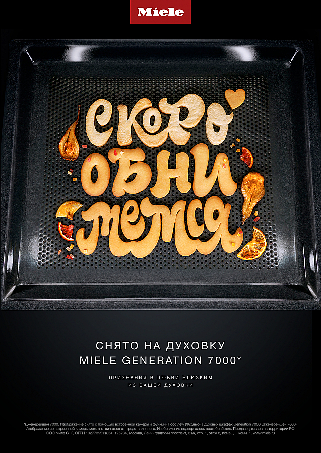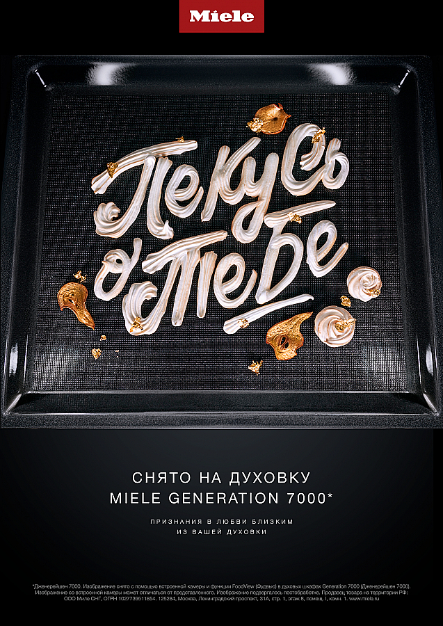 Каждое сообщение в этой кампании было выпечено и сфотографировано внутри настоящей духовки – используя уникальную встроенную термостойкую камеру в духовых шкафах Miele. Miele помог людям поделиться своими самыми тёплыми словами с близкими новым, более значимым способом. Креаторы взяли настоящих блогеров и превратили их слова в каллиграфию из настоящей еды. И использовали функцию FoodView Miele, которая позволяет наблюдать за едой внутри духовки через камеру, чтобы сделать фото наших сообщений с уникального угла