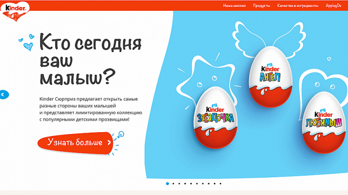 Впервые за всю историю бренда «Сюрприз» уступает свое место другим словам: «Конфетка», «Золотце»,«Радость», «Тыковка». Идея проекта построена на инсайте из родительского опыта. В возрасте от 3 до 7 лет дети растут и меняются особенно быстро, каждый день открывая что-то интересное для себя и в себе, отметили в Kinder.