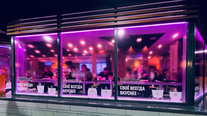 Также команда поддержала локальное коммьюнити городских фермеров – на несколько недель McDonald’s на ст.м. «Киевская» в Москве превратился в AR-ферму (окна ресторана окрасились в розовый цвет подобно окнам тех, кто выращивают рассаду у себя на подоконниках под светом фитоламп, а на подоконниках появились горшки с QR-кодами).