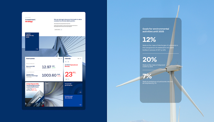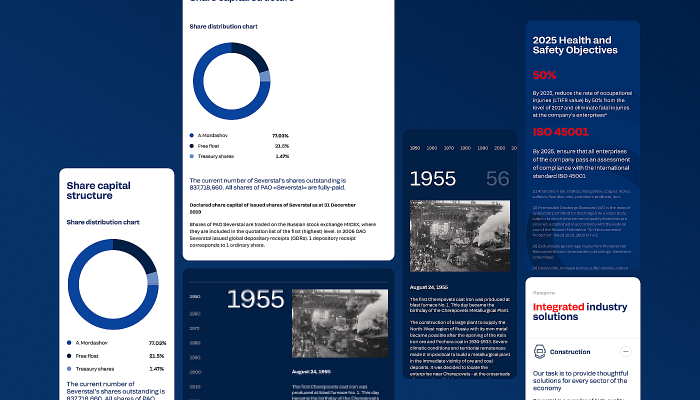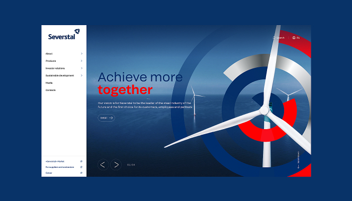 «Северсталь», крупнейшая в мире сталелитейная и горнодобывающая компания, провела масштабный ребрендинг и нуждалась в обновлении всех коммуникационных материалов. Перед нами стояла задача разработать и запустить корпоративный сайт и адаптировать обновленный брендбук в диджитал.