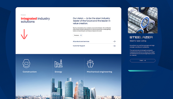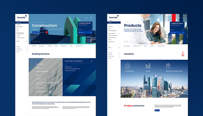 Нынешний корпоративный сайт объединяет в себе все бизнес-единицы компании, имеет удобный каталог по обновленной линейке продукции, обеспечивает доступ к услугам и сервисам компании. В рамках работы над каталогом продуктов «Северстали» спроектированы 3D-модели для каждой категории товара.