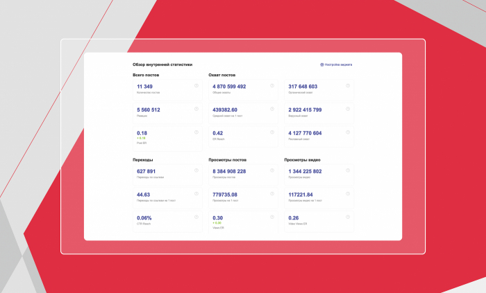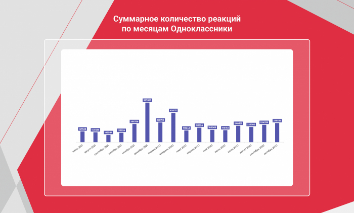 Мы выпустили более 1700 уникальных постов, более 11 000 постов в 6 аккаунтах, более 1000 уникальных сторис. Общее количество лайков превысило 4,4 млн, число реакций составило более 5,5 млн. Наш ER reach — 0,42%, что показывает высокую вовлечённость пользователей в публикуемый контент.