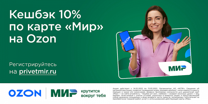 Платёжная система «Мир» и маркетплейс Ozon запустили новую партнёрскую акцию — кешбэк 10% на весь ассортимент Ozon при оплате картой «Мир». В честь этого креаторы Instinct и Hype Production разработали рекламную кампанию, главными героями которой стали телеведущая Ирена Понарошку и солист группы «Иванушки International» Андрей Григорьев-Аполлонов.