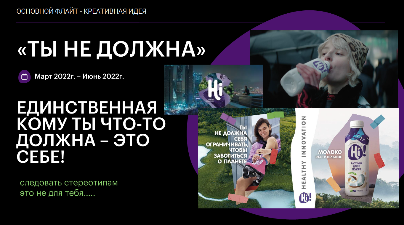 Таким образом, команда «Hi» не только постаралась разрушить стереотипы о девушках, но и представила растительные альтернативы мяса и молочной продукции, которые помогают заботиться о будущем нашей планеты, тем самым продвигая новую философию питания.