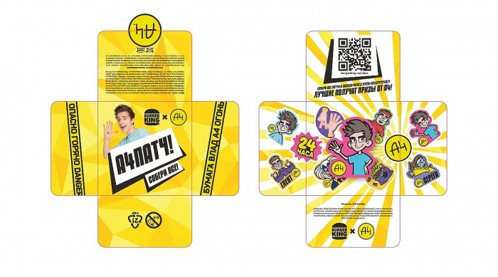 Промо сопровождалось множеством материалов — бокс с индивидуальным дизайном под Влада А4, POSM-носители для оформления ресторанов, видео, продвижение на сайте и даже специальный бургер. Но главной фишкой этого набора были — патчи.