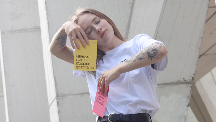 Для фраз использовали шрифт Pragmatica, он рациональный и строгий. Также в студии разработали альтернативные знаки — они добавляют жизни, выпрыгивают из регистра. У надписей проявляется танцующий спонтанный характер.