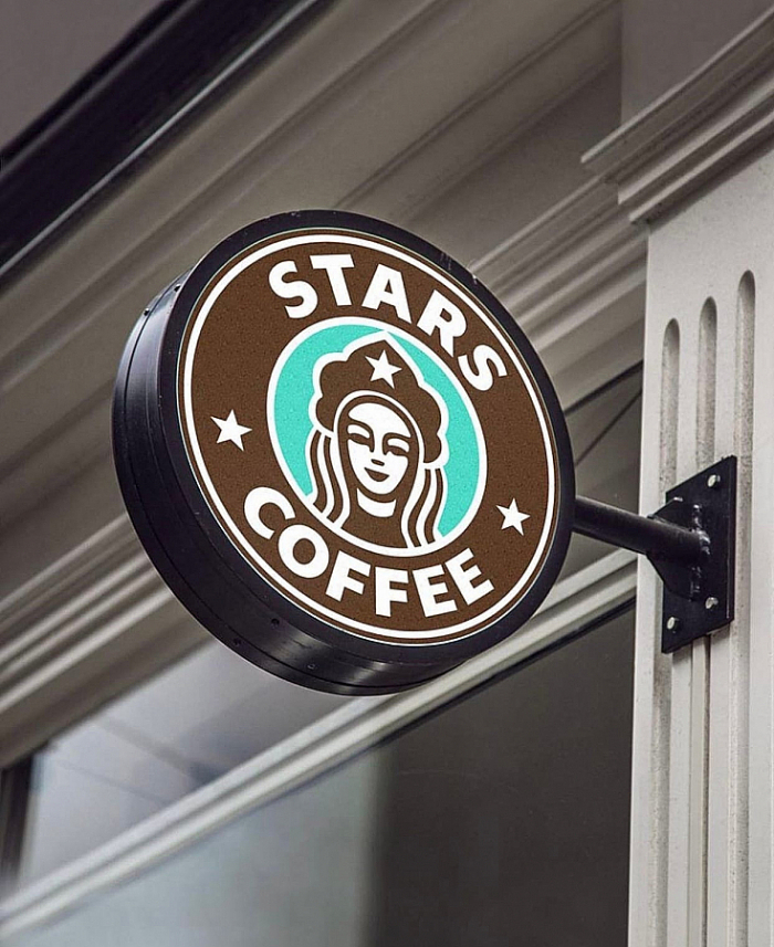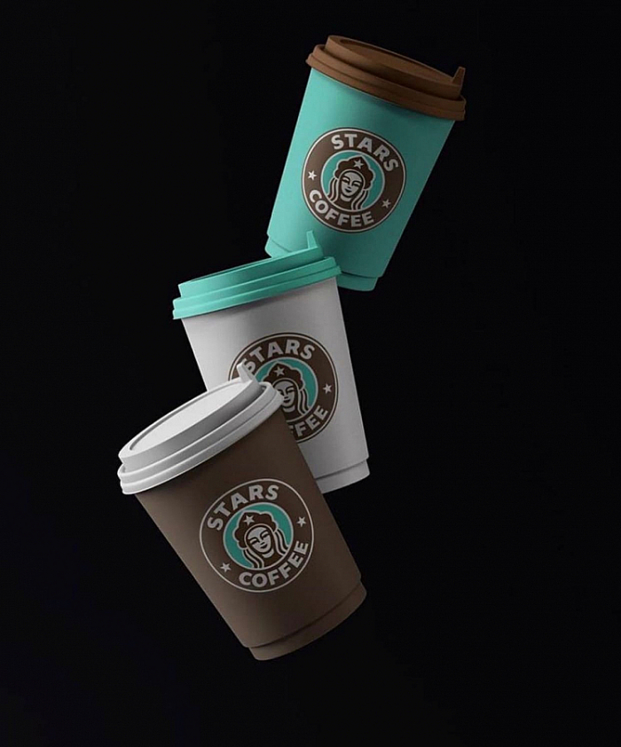 На новом логотипе экс-Starbucks изображен собирательный образ русской красавицы или Царевны-Лебедь, рассказали в ходе пресс-конференции владельцы Stars Coffee Тимати (Тимур Юнусов) и Антон Пинский. Разработкой логотипа обновленной сети кофеен занималась дизайнер из «Сбербанка» — она победила в конкурсе Тимати, который исполнитель и предприниматель провёл в своих соцсетях.