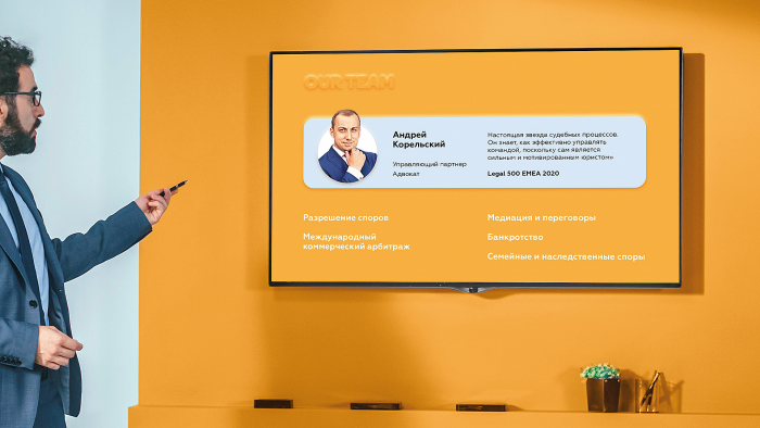 Неоморфизм подчеркивает особый подход бренда к адвокатскому юридическому консалтингу и вместе с тем — его соответствие мировым стандартам и этическим принципам.