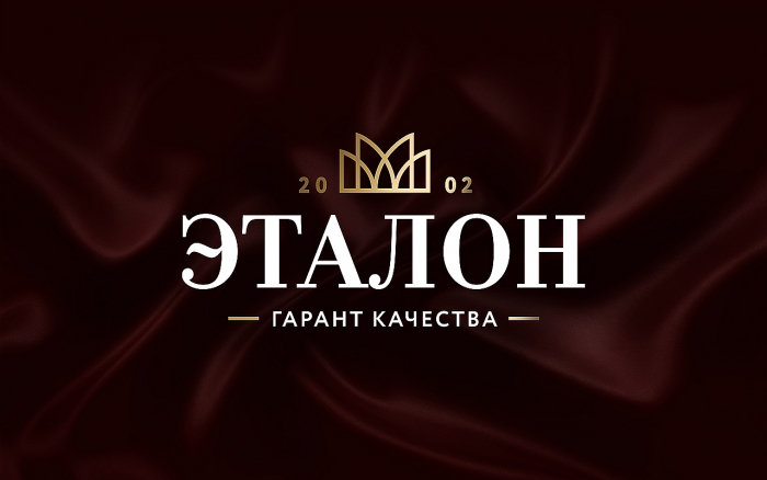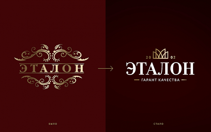 В логотипе «Эталон» использован лаконичный шрифт, вместо орнамента появилась стилизованная корона в стиле ар-деко и указанием года.