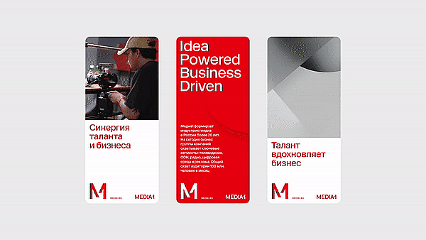 Творческий и ориентированный на результат подход «Медиа1» к развитию бизнеса можно сравнить с современным искусством: когда новые смелые идеи превращаются в коммерчески успешный продукт. Это позволило креаторам сформулировать суть бренда и слоган «Идеи делают бизнес».