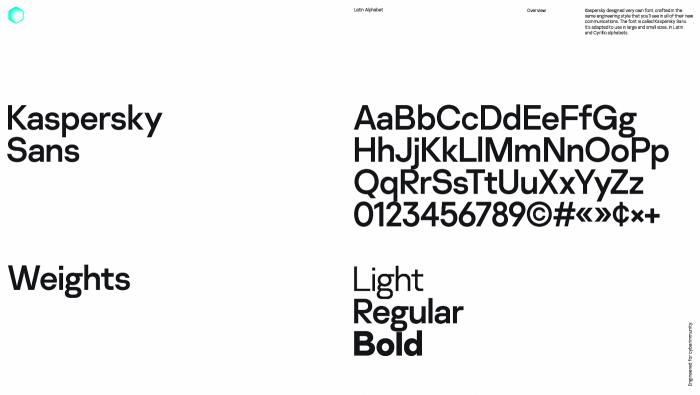 Типографика KasperskyOS сочетает в себе эстетику и утилитарность. Основная идея типографического поведения — имитация программного кода, который содержит втяжки и отступы. Этот прием позволяет создавать дополнительные смысловые акценты в коммуникации, при этом сохраняя дисциплину в макетах.
