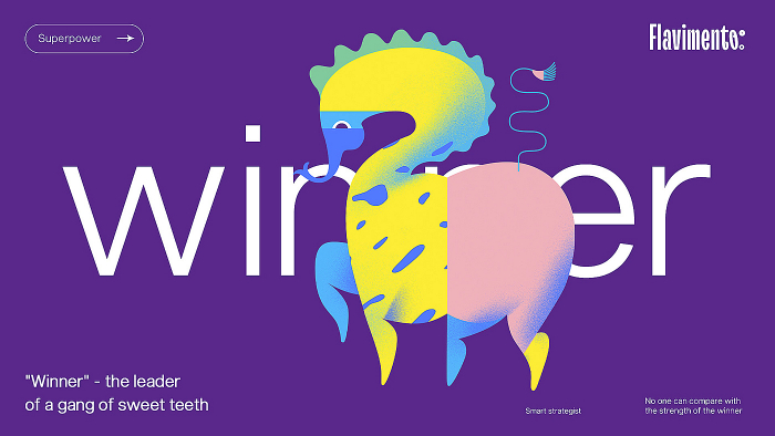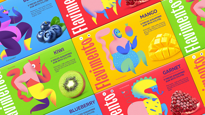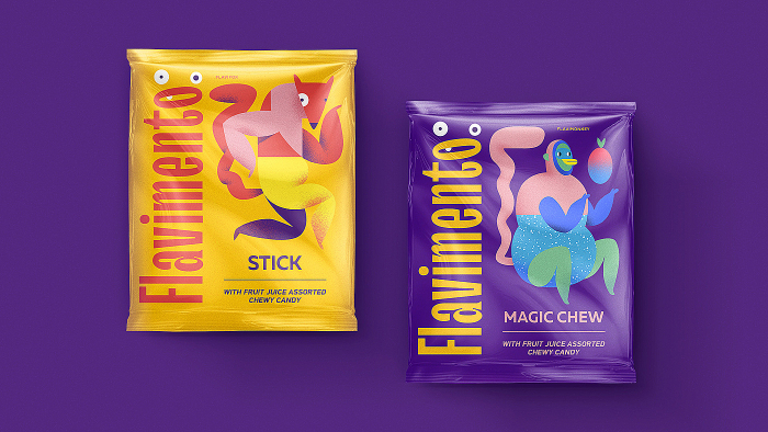 Supermarket branding agency разработало бренд сладостей Flavimento для аудитории, которую сложно «зацепить» котиками и енотиками. По мнению экспертов, это очень актуальный проект для классической категории с современным продуктом и сильным брендингом, впитавшим в себя самые актуальные тренды и поведенческие модели зумеров (поколения Z).