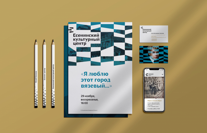 Московский музей Есенина состоит из самого музея и двух культурных центров. Тут сохраняют и изучают наследие поэта, а также регулярно проводят разнообразные выставки, перформансы и спектакли. Чтобы все подразделения работали под одним узнаваемым брендом, в студии задизайнили душевную айдентику.