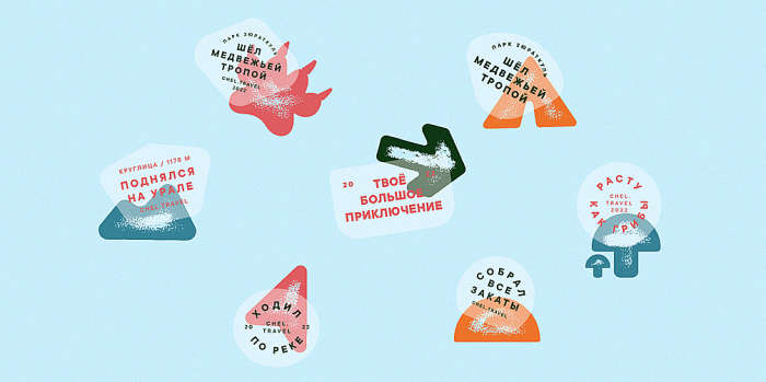 Во время путешествия иконки становятся функциональными: их можно использовать как навигацию на маршрутах. Если на графических носителях они дополняют коммуникацию и создают образы, то во время путешествия превращаются в информативные указатели. Также фирменный стиль дополнили динамичные плашки и штампы. Волнистые плашки — это отсылка к горным хребтам и рекам Урала. Они динамичны: поднимаются, переворачиваются или превращаются в марку с открытки. Здесь можно разместить контакты, герб, информацию о месте, считают в ENDY.