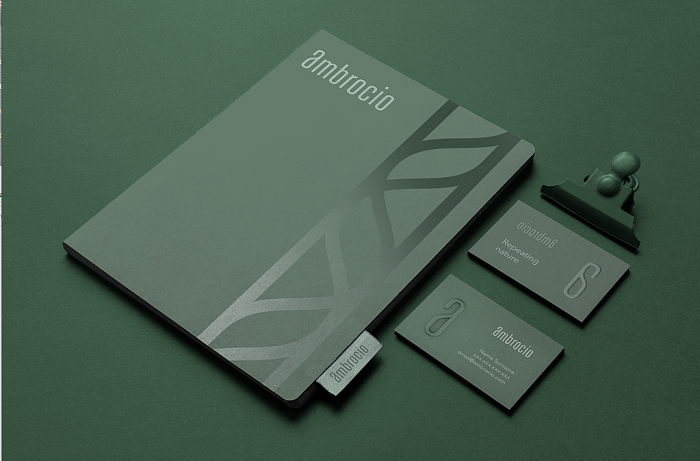 Фирменный стиль Ambrocio построен на минималистичной объёмной айдентике. Повторяющиеся элементы в дизайне создают уникальный узор, который становится визитной карточкой. Натуральные, природные цвета усиливают идею о природном происхождении технологий. Ключевыми характеристиками обновленного бренда являются динамичность, профессионализм и амбициозность. Бренд стремится показать всему миру, чего нам ожидать от науки в будущем. И, судя по Ambrocio, ожидать можно только хорошее, считают в агентстве.