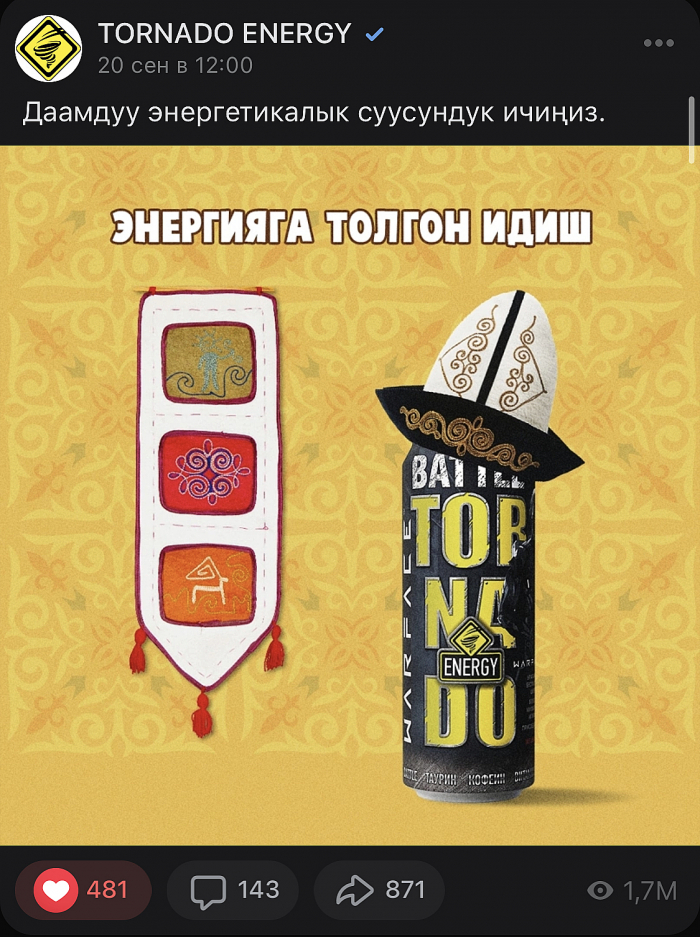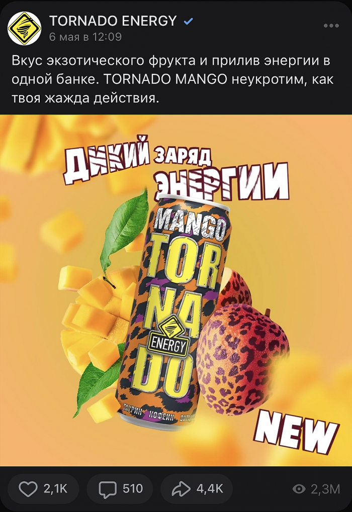 Клиент: Global Functional Drinks Rus, бренд TORNADO ENERGY