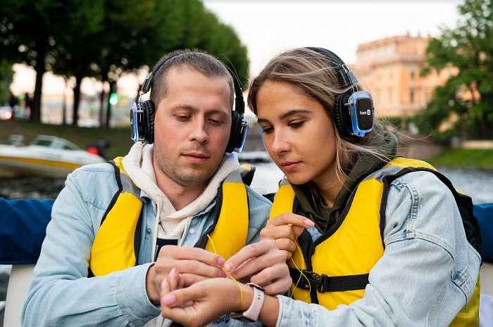 Брендированные спасательные жилеты и наушники отвечали за безопасность, комфорт и погружение в атмосферу северной столицы, а театральные бинокли и программки изящно дополняли художественный антураж мероприятия.