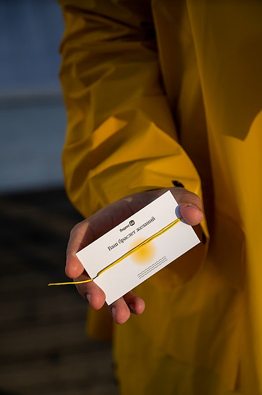 В финале прогулки каждый участник получал комплимент от Яндекс Go: «браслет желаний» — нить в цвете бренда с открыткой-инструкцией по завязыванию морского узла. Во время спектакля гость завязывал браслет на руке и загадывал желание, которое должно исполниться, когда браслет порвется. Талисман дополнял романтическую атмосферу прогулки и оставался гостю на память о необычном досуге.