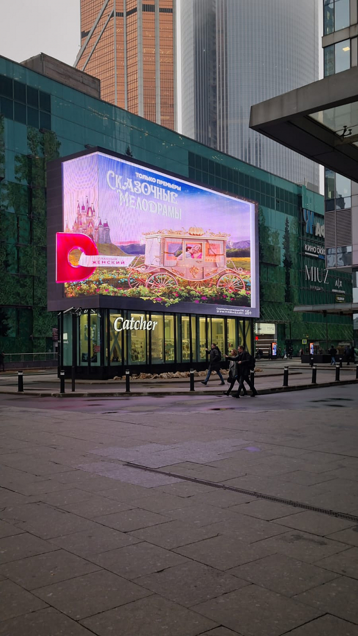 Телеканал «Домашний» разместил рекламу праймового слота премьерных мелодрам на медиакубе Catcher в «Москва-Сити»