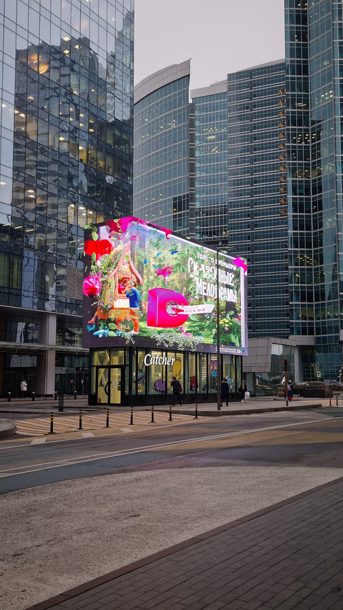 Мы выбрали медиакуб Catcher – уникальную рекламную конструкцию в самом сердце Москва-сити. Наш выбор определила удачная локация с трафиком более 170 тысяч человек в сутки и преимуществами премиальной аудитории. Для нее был создан специальный ролик, создающий эффект присутствия. Возможность погрузить зрителя в сказочные пространства, созданные нашими дизайнерами позволила добиться эффекта максимальной эмоциональной вовлеченности. Центром композиции стал трехмерный логотип канала.