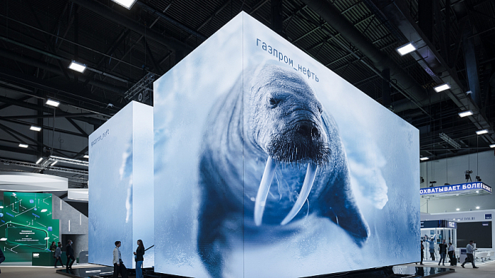 Компания «Газпром нефть» и студия Radugadesign представили на Петербургском международном экономическом форуме совместный арт-проект «Погружаясь в Арктику». В главном павильоне «Экспофорума» появился гигантский ледяной куб, ставший виртуальным порталом в мир крайнего севера.