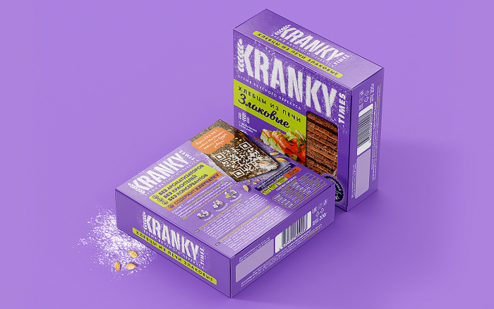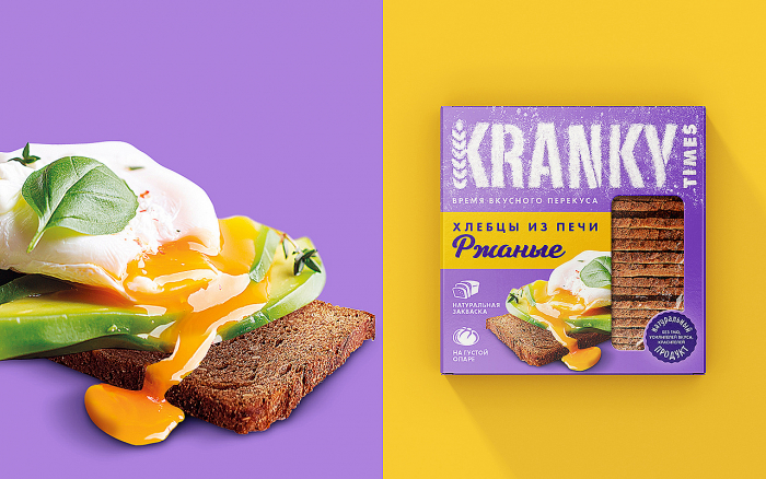 Создание бренд-платформы, нейминга и дизайна должно было отражать новую технологию производства компании Averton — запекание слайсов полезного хлеба в печи и сохранение характерного хруста, витаминов и минералов для полноценного перекуса. Для отражения уникальных преимуществ было создано название Kranky times, объединяющее в себе манящий хруст и идею перерыва для вкусного перекуса.