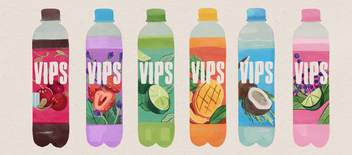 Вот уже 10 лет национальная водная компания «Ниагара» выпускает Vips — газировку, славящуюся неожиданными сочетаниями вкусов. В линейке из семи напитков можно встретить, например, лайм с бузиной или клубнично-лавандовый микс. Vips достаточно популярен среди молодой аудитории, но пока что ощутимо отстает от лидеров категории. Компания попросила агентство The Clients разработать коммуникацию, которая повысит знание бренда и раскроет его характер.