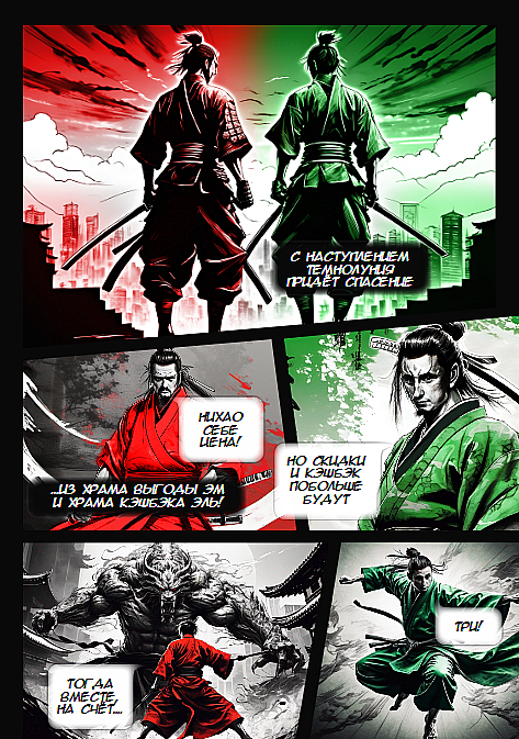 В этом году рамках поддержки главной распродажи года – «Черной пятницы» - группа «М.Видео-Эльдорадо» снова запустила масштабную рекламную кампанию сразу для двух брендов. На этот раз неизменные амбассадоры Александр Пушной и Вадим Галыгин предстали в образах мудрецов кунг-фу, которые обладают секретными приёмами «Скидуцу» и «Кэшбекидо» для борьбы с высокими ценами. Кампания состояла из трех этапов, для каждого из которых были созданы TV и OLV ролики, а также digital материалы, поддерживающие основную тематику и созданные с помощью нейросети: нейроманга и короткий ролик в стиле аниме.