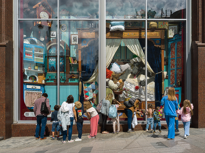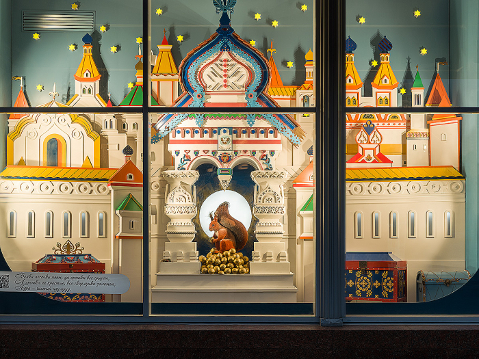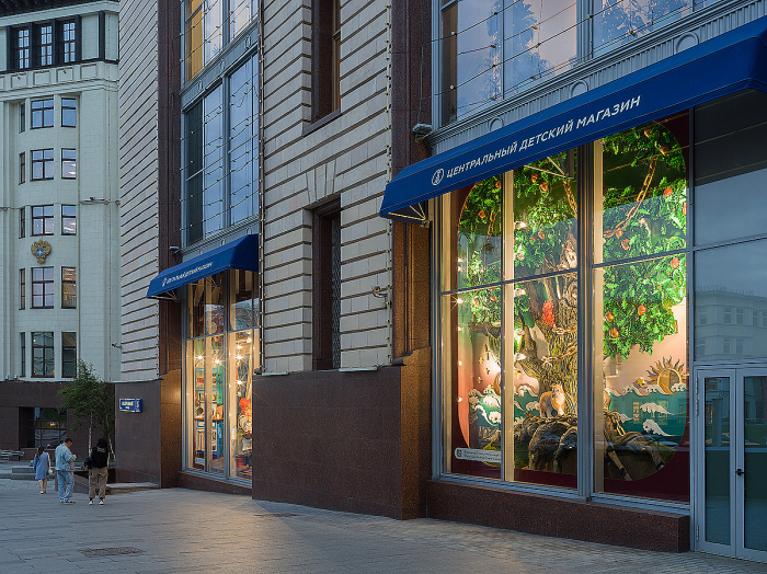 Центральный детский магазин на Лубянке оформил уличные витрины по мотивам известных детских сказок. Вдоль фасада здания застыли сюжеты из «Красной Шапочки», «Руслана и Людмилы», «Царевны-лягушки», «Сказки о царе Салтане», «Незнайки в Солнечном городе» и «Конька-Горбунка». Однако ежедневно каждые полчаса сказки оживают: с 10:00 до 22:00 прохожие могут увидеть световое шоу с двигающимися персонажами.