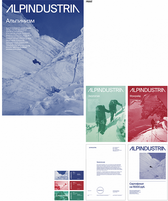 Сеть магазинов для горного туризма «Альпиндустрия» обратилась в агентство Setters с целью обновить логотип для сайта. При этом компания не собиралась разрабатывать айдентику — к этому этапу планировали приступить позже. Однако команда агентства предложила сразу создать все элементы дизайна: в итоге креаторы сохранили ассоциацию с горами, а также добавили атмосферу гор и экстрима во все элементы сайта.
