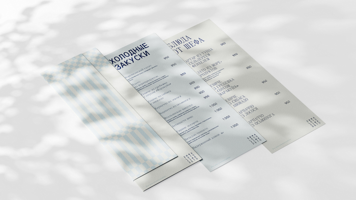 Для оформления коммуникаций были выбраны четыре шрифта, чтобы поддержать идею разнообразия, а также 2 основных цвета: синий – символизирующий зиму, и зеленый – символизирующий лето. В макетах используются крупные фото и разнообразная типографика. Меню – вертикальное, и в нем также отражена сезонность с помощью синей или зеленой клетки. Ресторан уже открыт и работает.