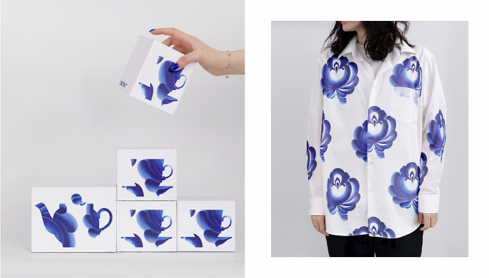 Брендинг «Объединения Гжель» объединил в себе прошлое и настоящее, традиции и современность. Синий, но не скучный, упорядоченный, но хаотичный, простой и универсальный, он классно смотрится как на плоскости, так и в объеме. Здесь графика проявляет форму изделия, будь то иллюстрация на постере, тарелка или фирменная футболка, а белый цвет выступает как полноправный участник действия. Сочетание округлых и острых элементов добавляет пластичности шрифту, делает его более похожим на гжельскую продукцию, а скругленные в новом написании рифмуются со знаком.