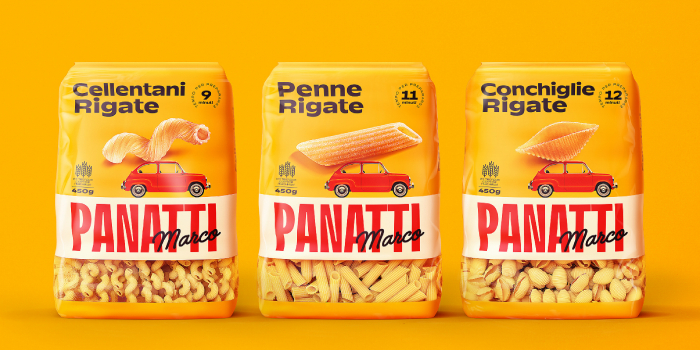 Основные коды в итальянских продуктовых брендах России — зелено-бело-красные цвета, как итальянский флаг, фотографии итальянцев и их семей. Вызов — привнести новое в визуальную идентификацию бренда и передать дух настоящей Италии, избегая приевшихся штампов. Наш стратегический отдел совместно с дизайн-отделом провели дизайн-аудит международных и российских полок с итальянскими брендами. Команда проанализировала смыслы и визуальную идентификацию. Стратеги также изучили отзывы российских покупателей об итальянских и псевдоитальянских брендах: что является драйверами покупки, что отталкивает покупателей. После аналитического этапа мы разработали вдохновляющий метафоричный концепт — подводку к платформе бренда — история итальянской семьи Marco Panatti. Решение — сделать из бренда живого человека с уникальным характером и задачами. В результате теплая концепция итальянской семьи транслируется насквозь: нейминг, метафорический концепт, визуальная идентификация, продукты. Знаменитый Fiat 500, гиперболизированная подача фуд зоны, ощущение кинематографического постера — все это делает дизайн честным. Ему веришь и ни на минуту не сомневаешься, что внутри — качественные итальянские продукты.