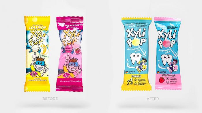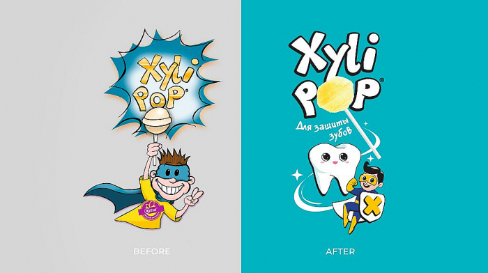 Miradent обратились к DS1 branding с задачей ввести их инновационную новинку XyliPop на российский рынок масс маркета и изменить позиционирование бренда. XyliPop — первый в мире сладкий леденец на палочке, который не только безопасен, но и эффективен для здоровья полости рта и рекомендован стоматологами. Команда DS1 branding провела тщательный анализ рынка и продукта и выяснила, что в России наблюдается рост спроса на сладости без сахара, а также повышенное потребление натуральных добавок, помогающих снизить калорийность продуктов. Ядро ЦА —мамы, следящие за количеством потребляемого ребенком сахара, а также мамы, которым важно, чтобы их дети получали вкусовое удовольствие от здоровых продуктов. А также «кидалты» — люди, стремящиеся сохранить в своей жизни детские привычки. Сейчас XyliPop успешно продается на различных маркетплейсах, расширяется ассортимент, есть позитивный отклик от потребителя и увеличение продаж. Агентство DS1 предложило несколько концепций, использующих знакомого персонажа и альтернативные решения, подчеркивающие пользу для зубов. Для каждой концепции разработали визуализацию. Были проведены глубинные интервью с потребителями, чтобы выбрать финальный вариант. Команда DS1 сделала упаковку яркой, свежей и веселой, чтобы привлечь внимание и детей, и родителей. Основной цвет — бирюзовый. Он придает ощущение свежести и создает связь с медицинской сферой.
