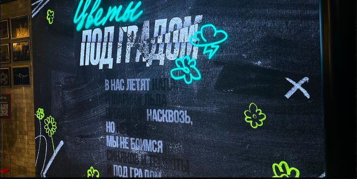 В начале марта в Москве состоялась премьера рэп-спектакля «Цветы под градом» — истории детей о жизни под немирным небом. Команде дизайнеров предстояло разработать брендбук, логотип и афишу, которые передадут смысл проекта, но при этом не будут давить на жалость (об этом попросили сами актеры). Для афиши использовали образ девочки, в ТЗ он был подробно описан. С одной стороны понимали, что точно хочет заказчик, с другой — времени на прорисовку или фотосессию практически не было. Поэтому это делегировали нейросети — в пять раундов она создала нужный силуэт, позу, одежду и даже прическу. А окружающая среда была отрисована и доработана под главную героиню.