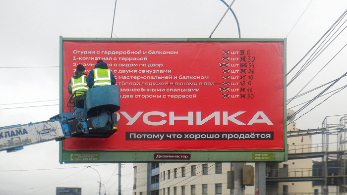 Компания «Брусника» решила раскрыть карты и обнародовать цифры по продажам. За динамикой выбытия лотов в течение ноября могли наблюдать жители Екатеринбурга, Новосибирска и Тюмени. При этом девелопер не побоялся сегментировать данные, чтобы показать, с какой скоростью люди покупают те или иные квартиры. Традиционно, первыми к нулю устремились однокомнатные. К 20 ноября из 600 вариантов из промо-пула осталось всего 142. — Иногда лучшая реклама – это простая демонстрация правды, — отметил креативный директор «Восхода» Андрей Губайдуллин. — Спрос со стороны потребителей — главный аргумент в пользу репутации застройщика и качества его продукта. Кампания получилась hand made в буквальном смысле. Информацию на статичных конструкциях актуализировали с помощью кисти и краски.