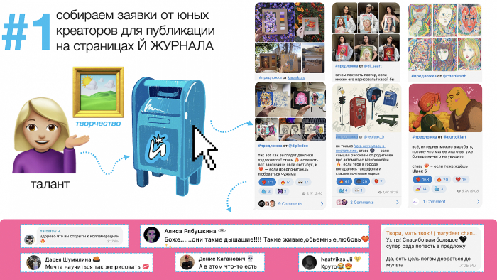 Еще в 2023 году Yota сфокусировалась на работе с целевой аудиторией — зумерами, изменила коммуникационную стратегию и создала творческое сообщество «ВКонтакте». В 2024 году задачей стало масштабировать опыт как вширь, так и вглубь. Так, локальное комьюнити художников «ВКонтакте» «11110011101111111010011000011010» — перевод «Yota» на двоичный код —трансформировалось в масштабное бренд-медиа «Й ЖУРНАЛ», где через весь контент красной нитью проходил бренд. Мы также вовлекли аудиторию в создание контента: каждый может проявить себя и показать результаты своего творчества. Yota? Можно!