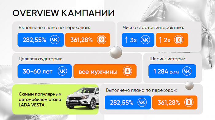 - Перевыполнение плана по некоторым основным показателям (старт игры, CTR, переходы на сайт) в 2–3 раза.