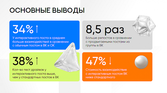 - В 8,5 раз больше репостов в сравнении с продвигаемыми постами.
