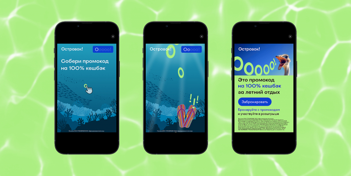 Перед началом туристического сезона «Островок!» усилил свои охватные инструменты, внедрив мобильную рекламу через платформу BYYD в маркетинговую стратегию. Для повышения вовлеченности пользователей продакшен-команда платформы разработала серию креативов с игровыми механиками. Технологии Big Data позволили точно настроить таргетинг на ключевые сегменты, включая путешественников и пользователей приложений конкурентов, обеспечив релевантность показов. Кампания достигла охвата 7 млн уникальных пользователей, что привлекло целевой трафик и укрепило взаимодействие бренда с аудиторией.